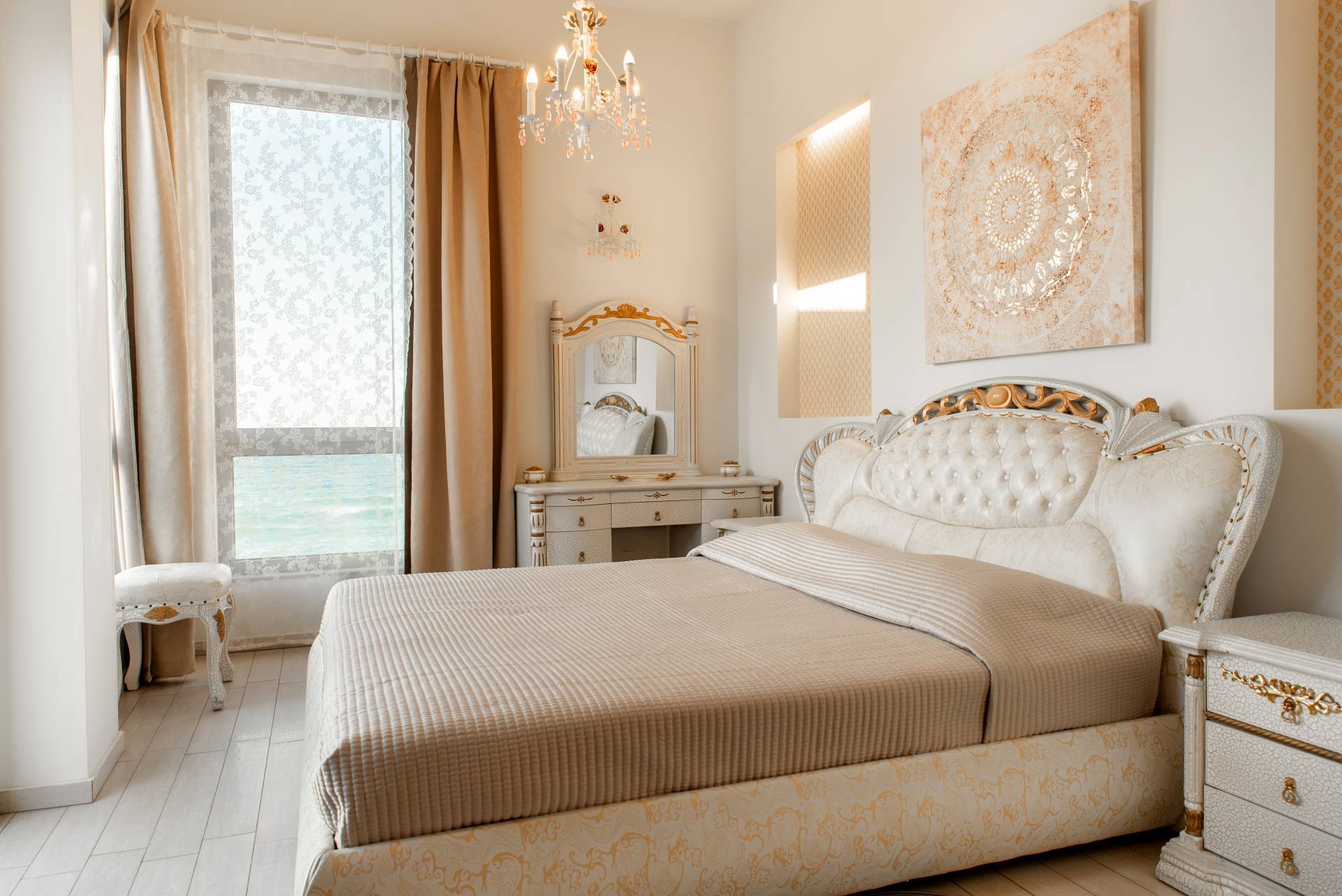 2nd floor:: 3 bedrooms (2 bedrooms with sea view and terrace, 1 bedroom with mountain view with balcony), spacious bathroom with bathtub and WC with shower.